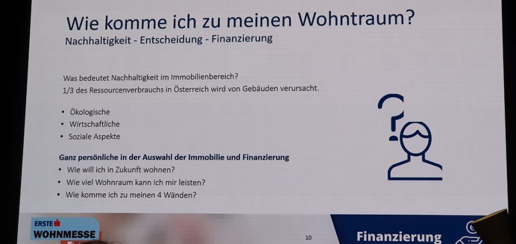 Alles rund ums Bauen, Wohnen, Finanzieren, Versichern gab es am 6.11.2022 am Erste Campus in diversen Vorträgen: z.B.: Finde dein Traumhaus, deine Traumwohnung und die dazu passende Finanzierung.